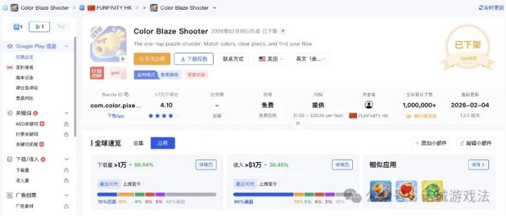 而欺骗榜单数据长远,《Pixel Flow!》场所赛谈属于 Color Shooter / Conveyor Puzzle 类型,这一类玩法在近一年挪动游戏阛阓中增长较快。该类游戏庸俗通过粗浅的射击机制配合拼图式关卡运筹帷幄,使玩家在短时天职得回执续的视觉反映与通关建树感。由于玩法结构相对纯粹、开采资本较低,同期又适应通过告白汇注进行大范围买量实施,因此该品类在挪动游戏阛阓中具有较高活跃度。