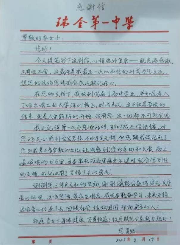 正如2025年9月考入哈尔滨工业大学的小琳写说念,“您的资助让我再行看到了但愿,让我领有追求梦思的勇气。将来的日子里,我一定会继续勉力,让您看到一个更优秀的我。”朴实的言语里,说念出了统共受助孩子的心声,藏着对将来的憧憬,更酝酿着将爱心传递下去的决心。